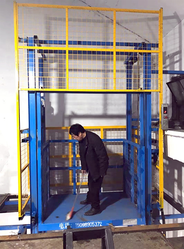 浙江海鹽鮑總采購的這款1噸升降貨梯的尺寸是1500*1100mm,載重1000kg,提升高度是3500mm,這個現(xiàn)場環(huán)境是在原有車間加層后,改為倉庫的一個安裝環(huán)境,從1500mm單方向進(jìn)出。