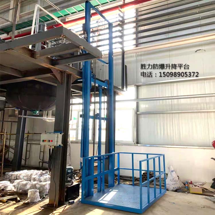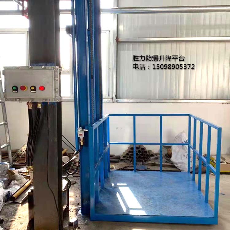 防爆升降平臺(tái)是一種快速實(shí)現(xiàn)樓層間貨物運(yùn)輸?shù)暮?jiǎn)易電梯,主要結(jié)構(gòu)為液壓式,因此也被稱為防爆液壓式升降貨梯,一般防爆等級(jí)為ExdIIBT4,適用于化工車間、食品廠、藥廠等需要使用防爆環(huán)境的場(chǎng)所。勝力機(jī)械生產(chǎn)的防爆升降平臺(tái)載重從500公斤到100噸不等,提升高度根據(jù)客戶現(xiàn)場(chǎng)的實(shí)際高度進(jìn)行定制。平臺(tái)的大小,是否需要轎廂,轎廂材質(zhì)等都可以根據(jù)客戶的需求定制,滿足不同客戶的使用要求。