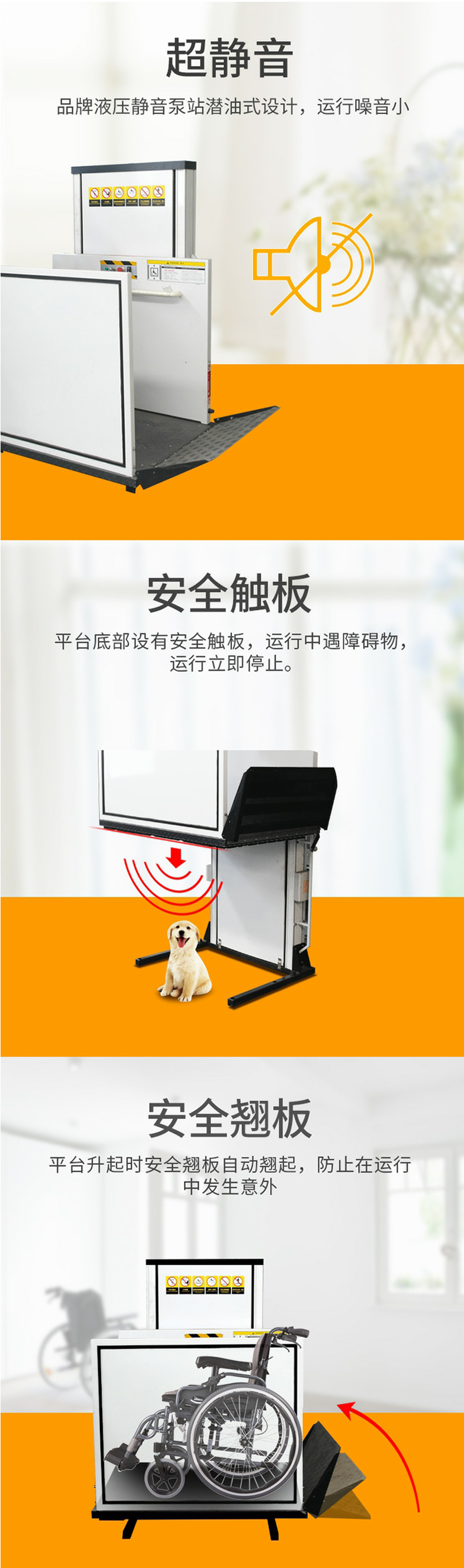 無(wú)障礙升降平臺一般升降高度在3米以?xún)?,轎廂尺寸根據家中空間進(jìn)行設計制作。我司可派技術(shù)人員免費到家中勘察測量,并給出詳細的技術(shù)方案后,再進(jìn)行生產(chǎn)與安裝,滿(mǎn)足客戶(hù)的使用要求。