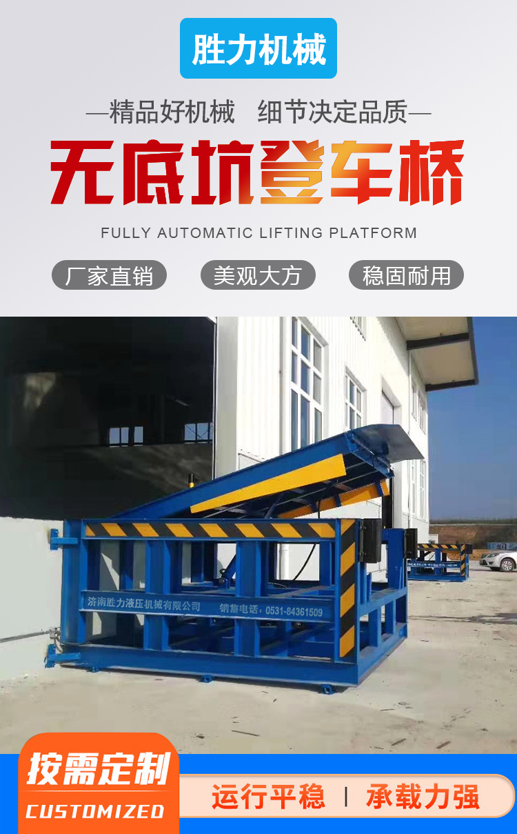 無(wú)底坑登車(chē)橋是可以不需月臺不需挖坑的裝卸輔助設備,本設備可根據貨車(chē)車(chē)廂不同高度調節即可調高也可調低,它的高度調節功能使貨車(chē)與庫房的貨臺之間架起一座橋梁,方便叉車(chē)駛入車(chē)廂內部進(jìn)行貨物的批量裝卸。設備采用進(jìn)口液壓泵站,兩側設有防軋裙板,工作更加安全,僅需單人作業(yè),即可實(shí)現貨物的快速裝卸。固定登車(chē)橋可使企業(yè)減少大量勞力,提高工作效率,獲取更大經(jīng)濟效益。無(wú)底坑登車(chē)橋被廣泛應用在裝卸車(chē)頻繁、車(chē)型不一的大型企業(yè)、倉庫、車(chē)站、碼頭、倉儲物流基地、郵政運輸、物流配送等。