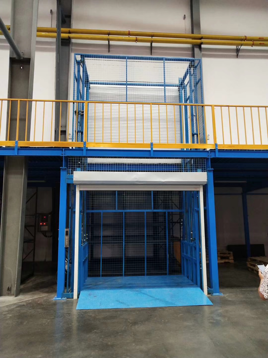我們在安裝液壓升降貨梯時(shí),一般會(huì )配套外圍防護以及外層門(mén),根據不同的使用環(huán)境,外圍防護和外層門(mén)的選擇也是多樣式的。如果我們安裝在室內,四周沒(méi)有墻體的情況下,我們會(huì )在液壓升降貨梯的外圍做鋼網(wǎng)封閉,這樣可以有效的防止人員踏空。如果我們是安裝在樓體戶(hù)外,在安裝完液壓升降貨梯后,我們會(huì )在平臺外側做彩鋼瓦整體封閉,這樣可以有效的避免液壓升降樓貨長(cháng)期被雨水侵蝕。