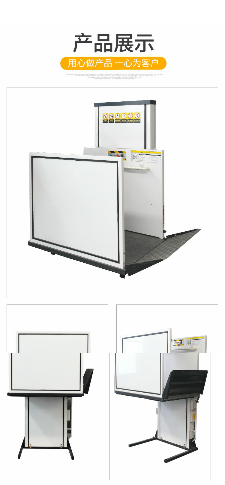 無(wú)障礙升降平臺一般升降高度在3米以?xún)?,轎廂尺寸根據家中空間進(jìn)行設計制作。我司可派技術(shù)人員免費到家中勘察測量,并給出詳細的技術(shù)方案后,再進(jìn)行生產(chǎn)與安裝,滿(mǎn)足客戶(hù)的使用要求。