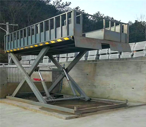 固定剪叉式卸豬臺連接貨車(chē)與地面,它的剪叉機械結構,使卸豬臺起升有較高的穩定性,升降動(dòng)力可分為220V或380V電源,臺面使用花紋板。
