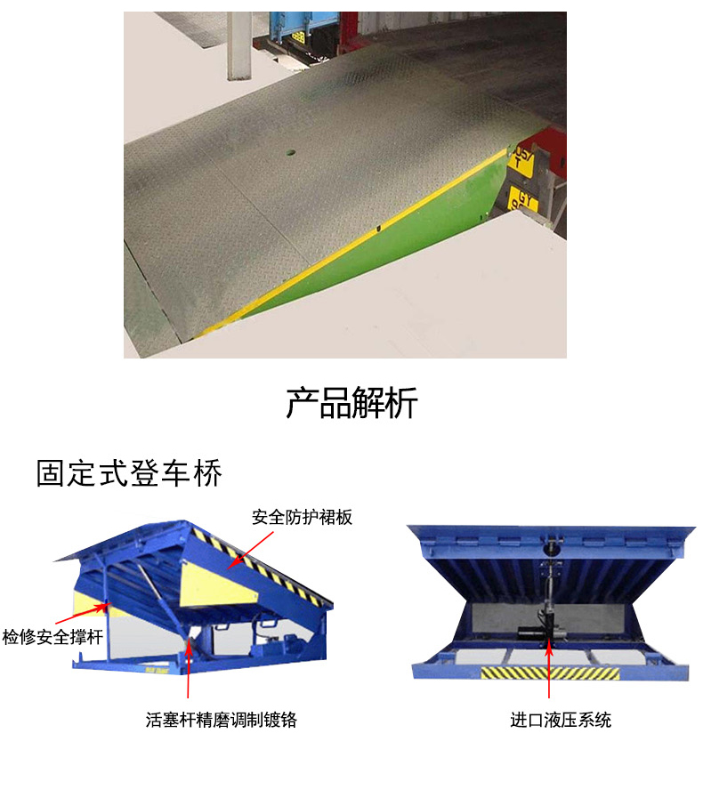 固定式登車(chē)橋被廣泛應用到大型的物流園、倉庫、碼頭、郵政運輸、工廠(chǎng)等各種事業(yè)單位的裝卸作業(yè)。