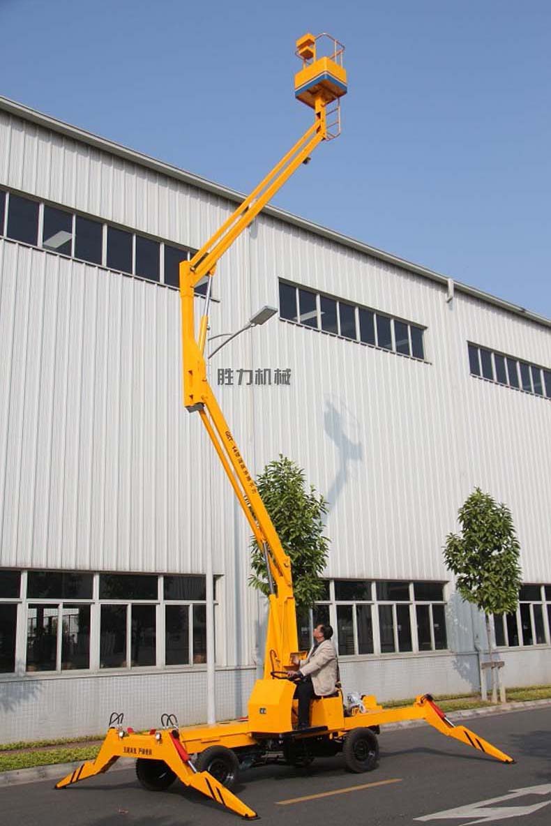 移動(dòng)曲臂式升降平臺是由二、三節升降臂組成的高空作業(yè)平臺,可懸伸作業(yè)、也可跨越障礙物在一處地點(diǎn)進(jìn)行多點(diǎn)作業(yè),它采用液壓撐腿,360度旋轉作業(yè),工作高度可達15米左右,特別適用于室外高空作業(yè)。移動(dòng)曲臂式升降平中的運輸方式非常簡(jiǎn)單,工作人員可在平臺上通過(guò)方向盤(pán)直接把平臺駕駛到工作地點(diǎn)。它的行走與升降動(dòng)力一般為電瓶驅動(dòng)或柴油發(fā)動(dòng)機兩種,為了便于操作,柴油發(fā)動(dòng)機采用電啟動(dòng)方式。該產(chǎn)品被廣泛應用于園林、電力、市政、攝影、路燈、廣告、交通、大型工礦企業(yè)、車(chē)站、機場(chǎng)、碼頭等行業(yè)的安裝維修及登高作業(yè)。