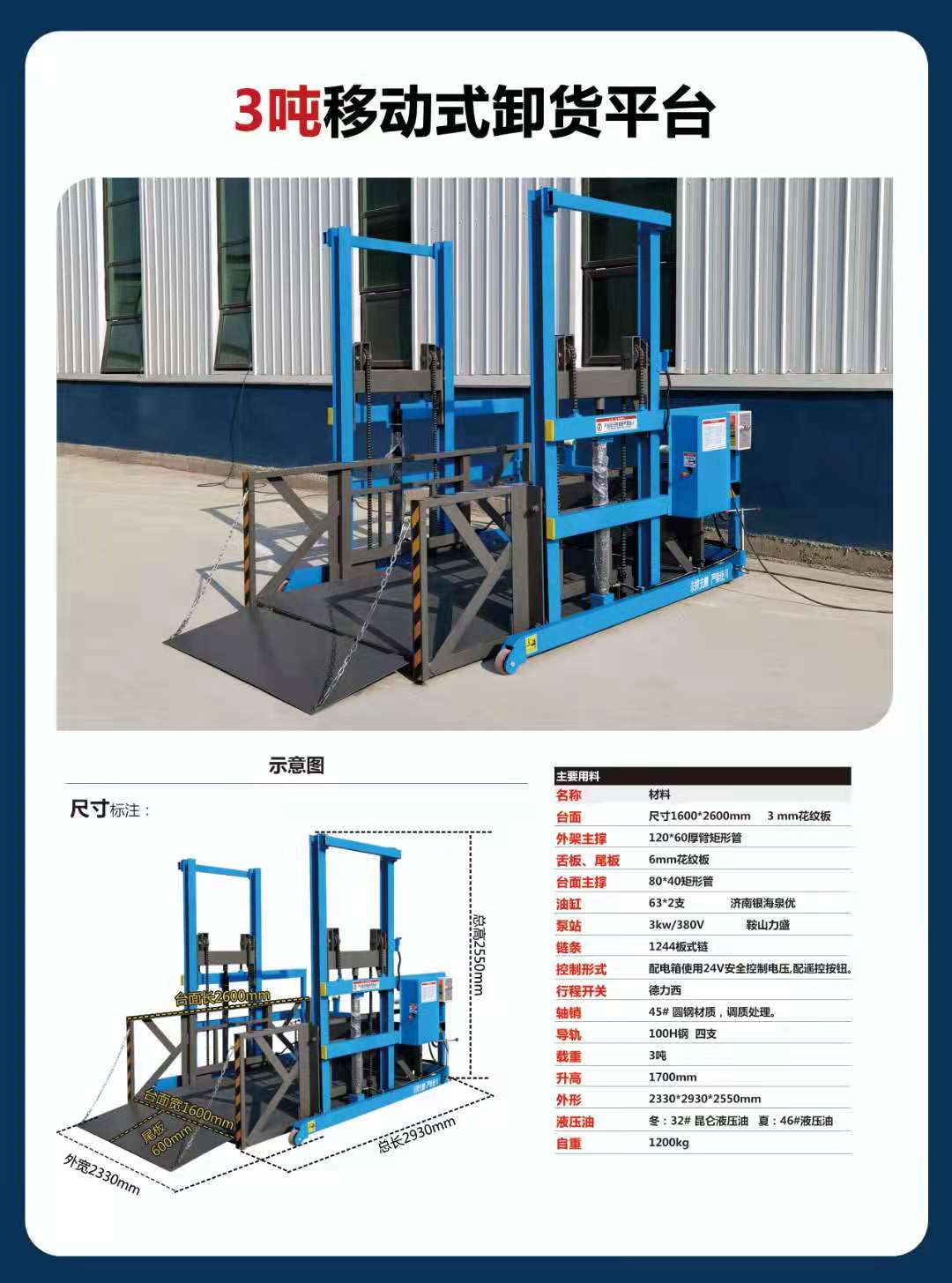 卸貨柜設備也可以叫做升降式卸貨平臺,屬于可移動(dòng)升降平臺。卸貨柜設備擁有移動(dòng)靈活,升降平穩的特點(diǎn)。被廣泛應用于集裝箱與叉車(chē)等搬運車(chē)輛配套進(jìn)行貨物的快速裝卸等。卸貨柜平臺的操作簡(jiǎn)單,把平臺移動(dòng)至需要裝卸貨物的車(chē)輛尾部,把叉車(chē)等貨物放入工作臺面上,一人通過(guò)無(wú)線(xiàn)遙控或工作臺面上的按鈕即可輕松把叉車(chē)等貨物升高至與車(chē)尾同等高度,使叉車(chē)與貨物輕松快速的駛入車(chē)廂內部。