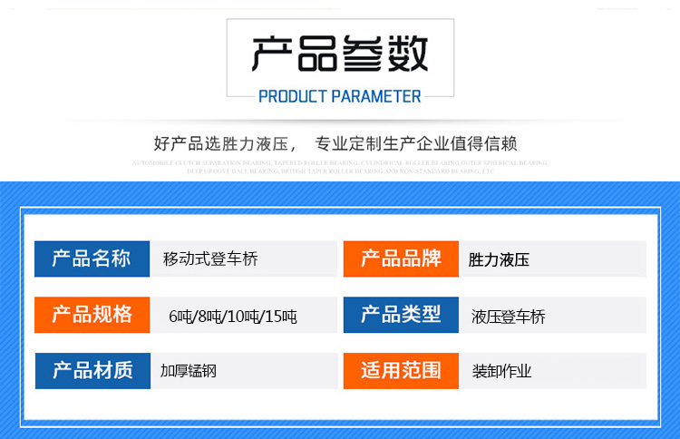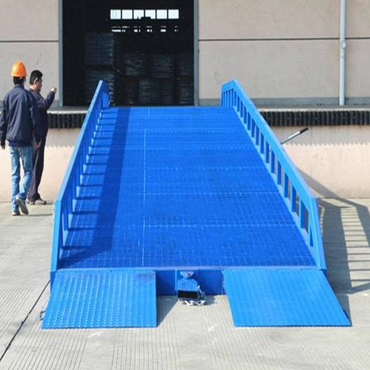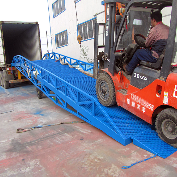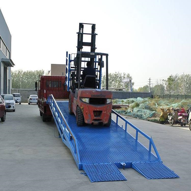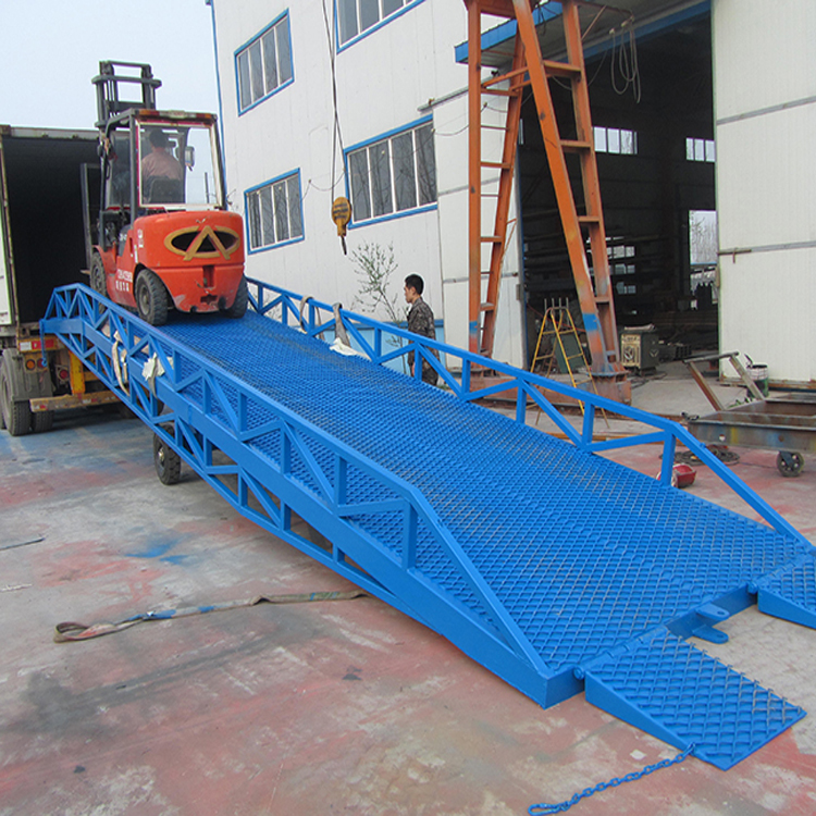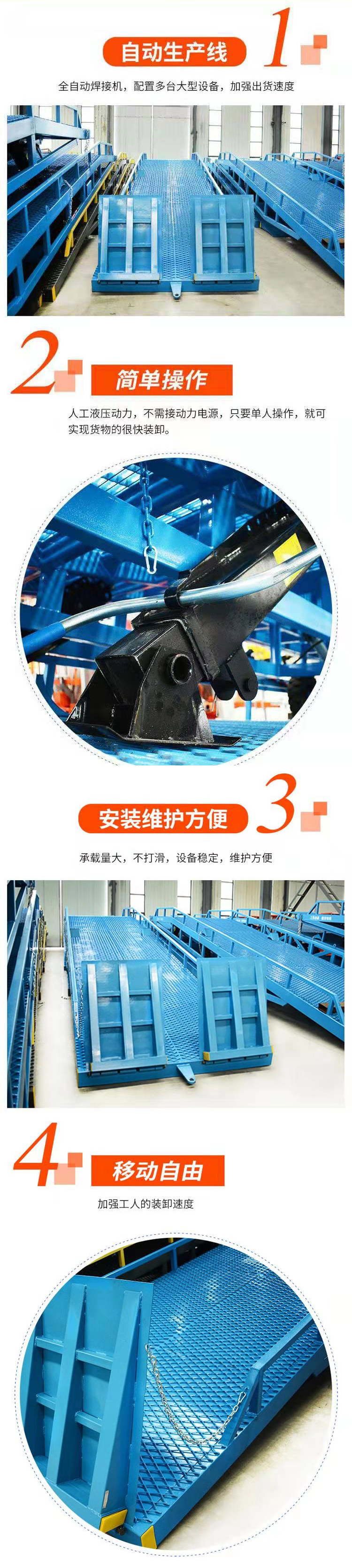 移動(dòng)式液壓登車(chē)橋是實(shí)現貨物快速裝卸的專(zhuān)用輔助設備,它的高度調節功能使貨車(chē)與庫房的貨臺之間架起一座橋梁,叉車(chē)等搬運車(chē)輛通過(guò)它能直接駛入貨車(chē)內部進(jìn)行貨物的批量裝卸,僅需單人作業(yè),即可實(shí)現貨物的快速裝卸。移動(dòng)式液壓登車(chē)橋使企業(yè)減少大量勞力,提高工作效率,獲取更大經(jīng)濟效益。臺面均設計為網(wǎng)格狀鋼板,這種結構能保證具有很好的強度,又具有防滑功能,還能方便地清掃工作臺面,使它能經(jīng)常地保持清潔、美觀(guān)。移動(dòng)式登車(chē)橋無(wú)須外接電源,通過(guò)手搖泵做動(dòng)力能輕松地在其整個(gè)調整范圍內按50mm的倍數進(jìn)行高度的調整??梢猿浞诌m應各種不同高度的貨車(chē).