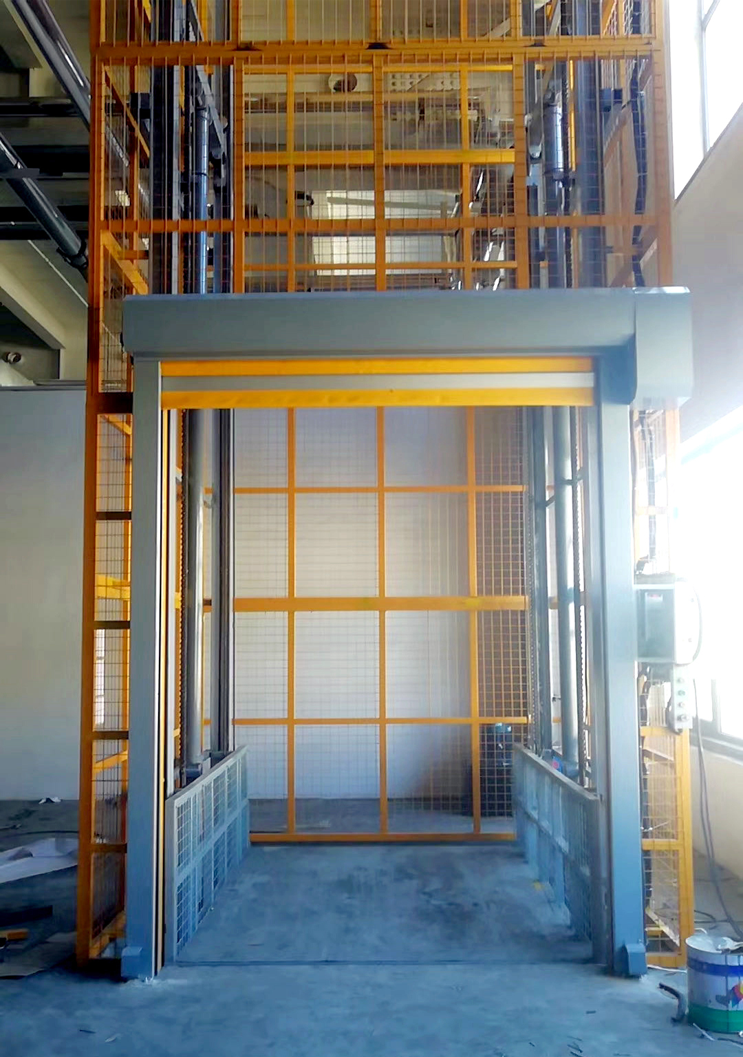 我們在安裝液壓升降貨梯時(shí),一般會(huì )配套外圍防護以及外層門(mén),根據不同的使用環(huán)境,外圍防護和外層門(mén)的選擇也是多樣式的。如果我們安裝在室內,四周沒(méi)有墻體的情況下,我們會(huì )在液壓升降貨梯的外圍做鋼網(wǎng)封閉,這樣可以有效的防止人員踏空。如果我們是安裝在樓體戶(hù)外,在安裝完液壓升降貨梯后,我們會(huì )在平臺外側做彩鋼瓦整體封閉,這樣可以有效的避免液壓升降樓貨長(cháng)期被雨水侵蝕。